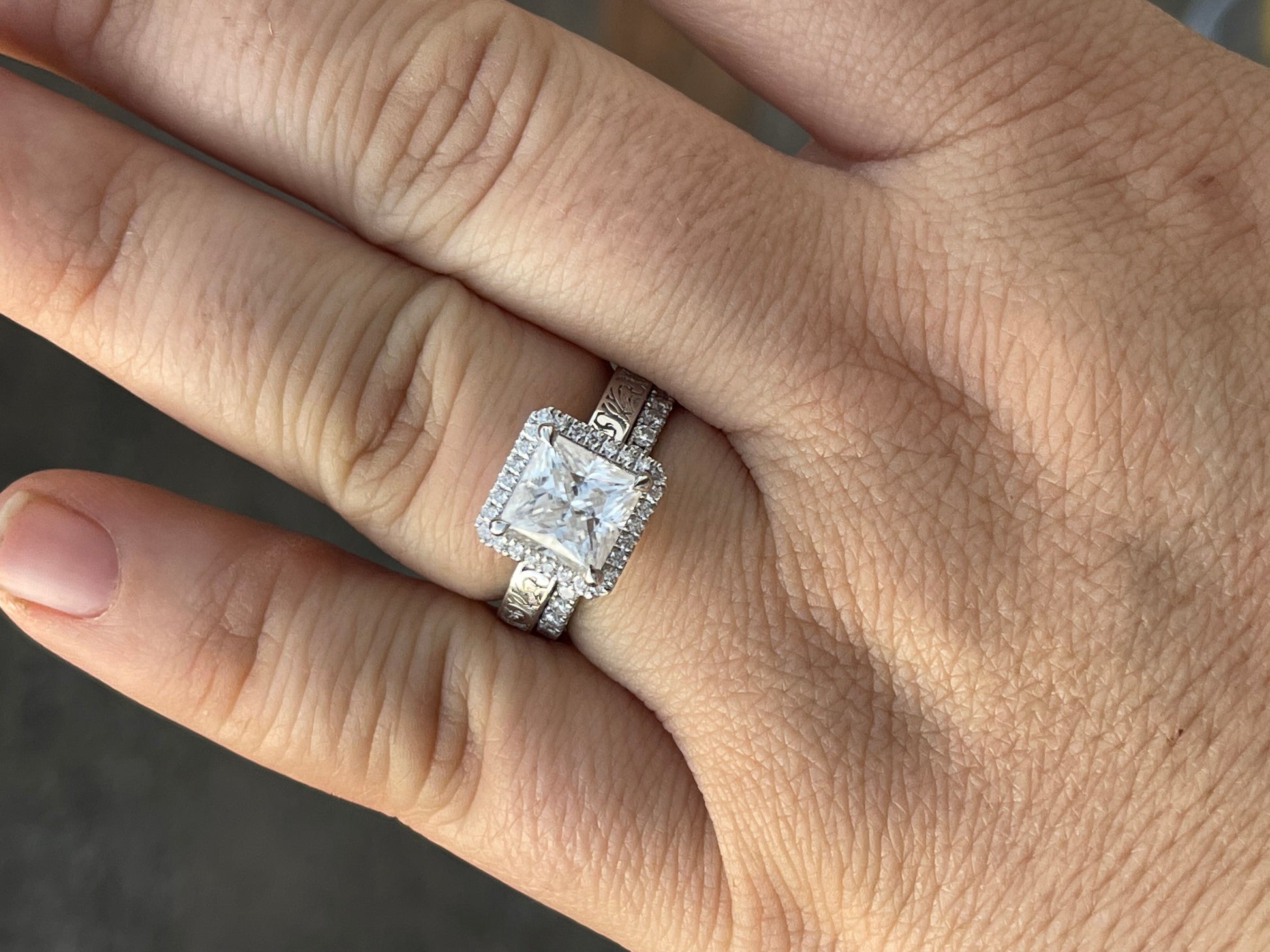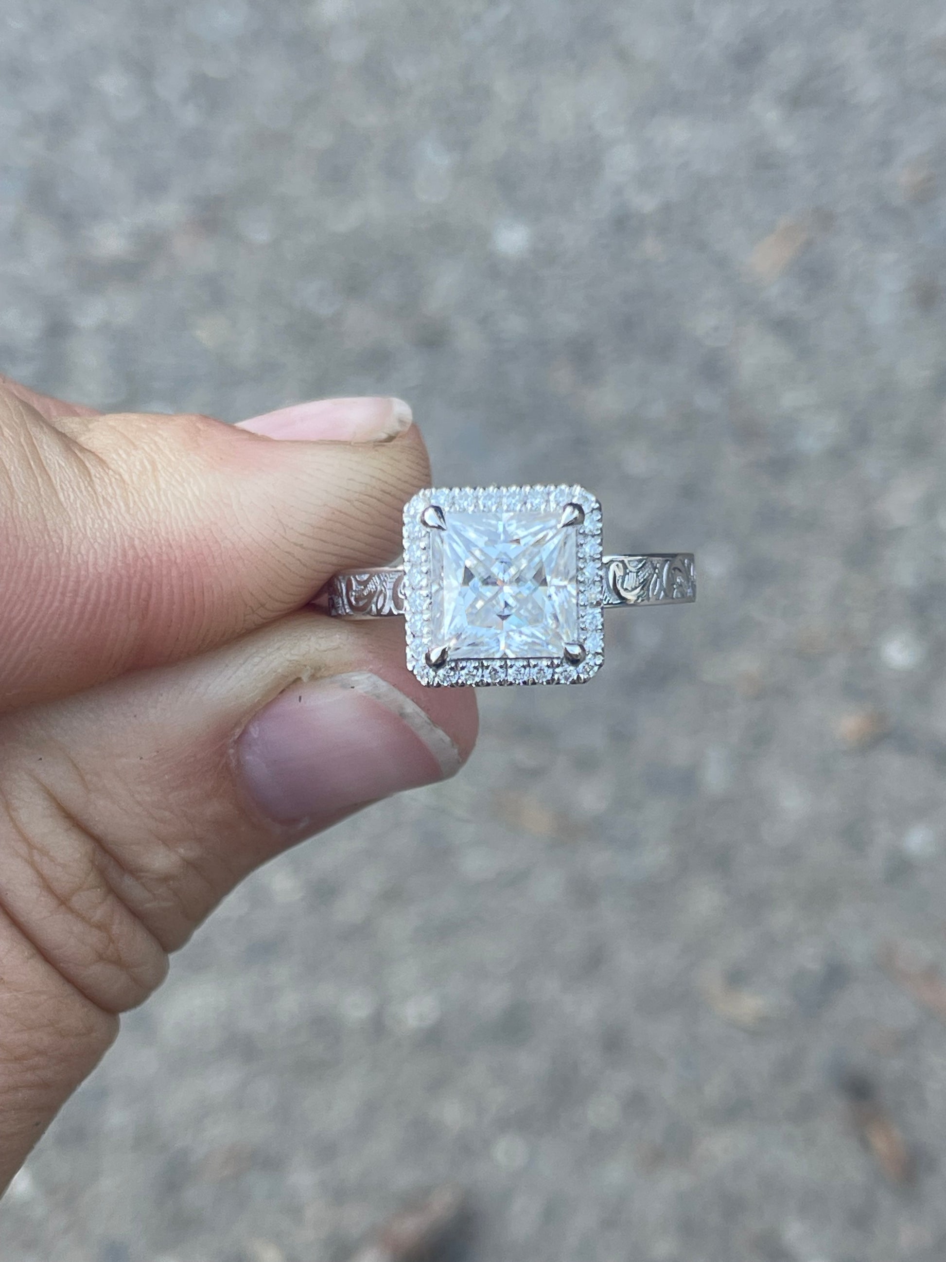 3ct Princess Cut LAB DIAMOND with Halo LAB DIAMOND Stones on 3mm Pattern Band
