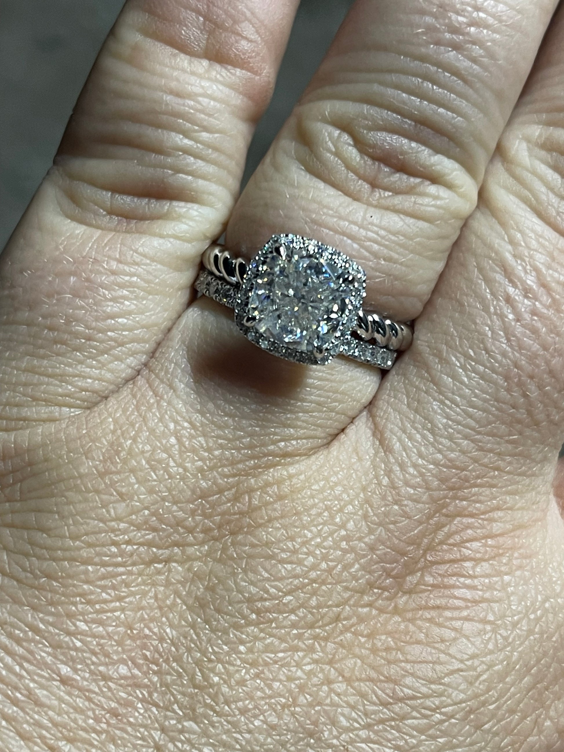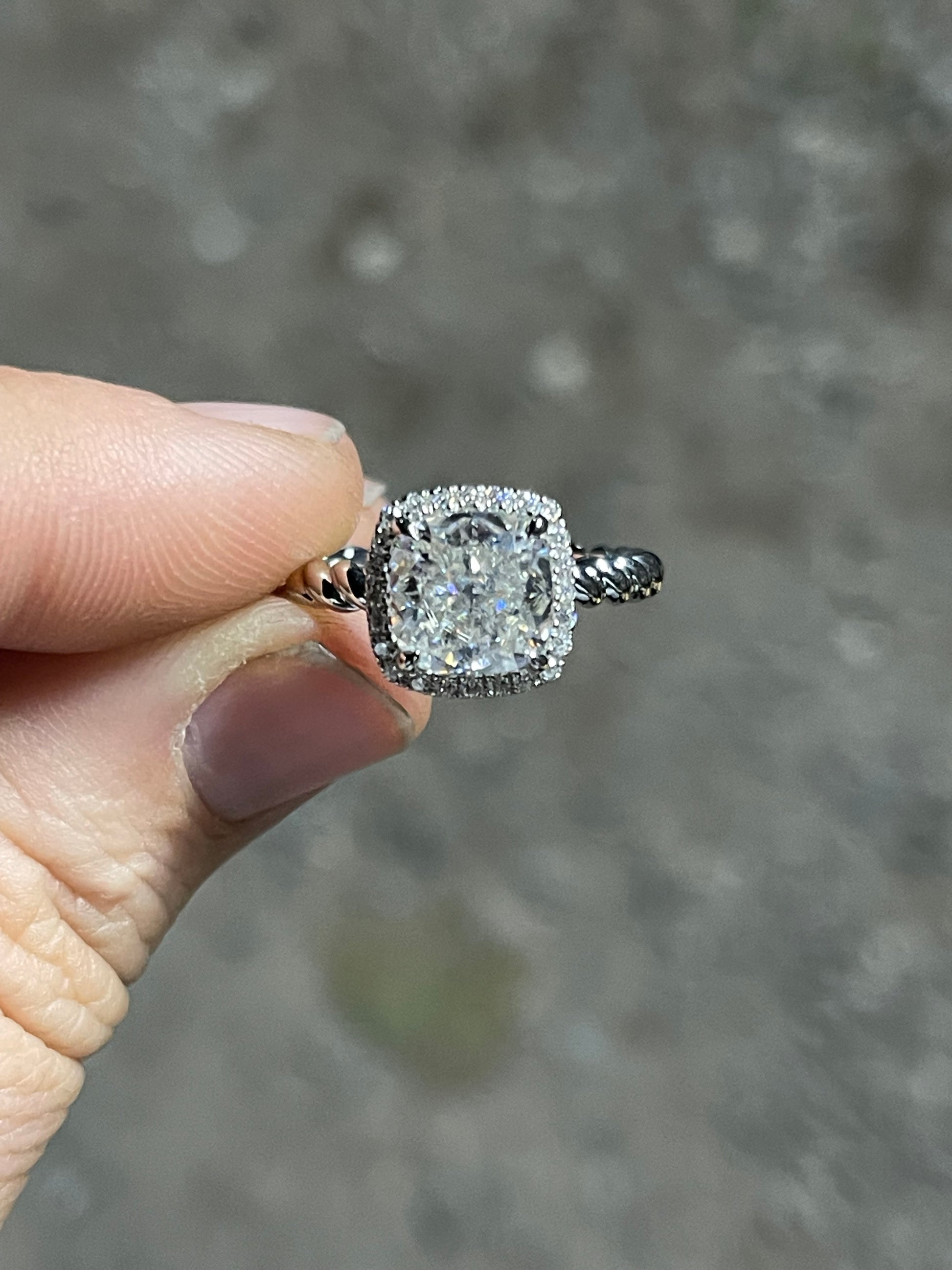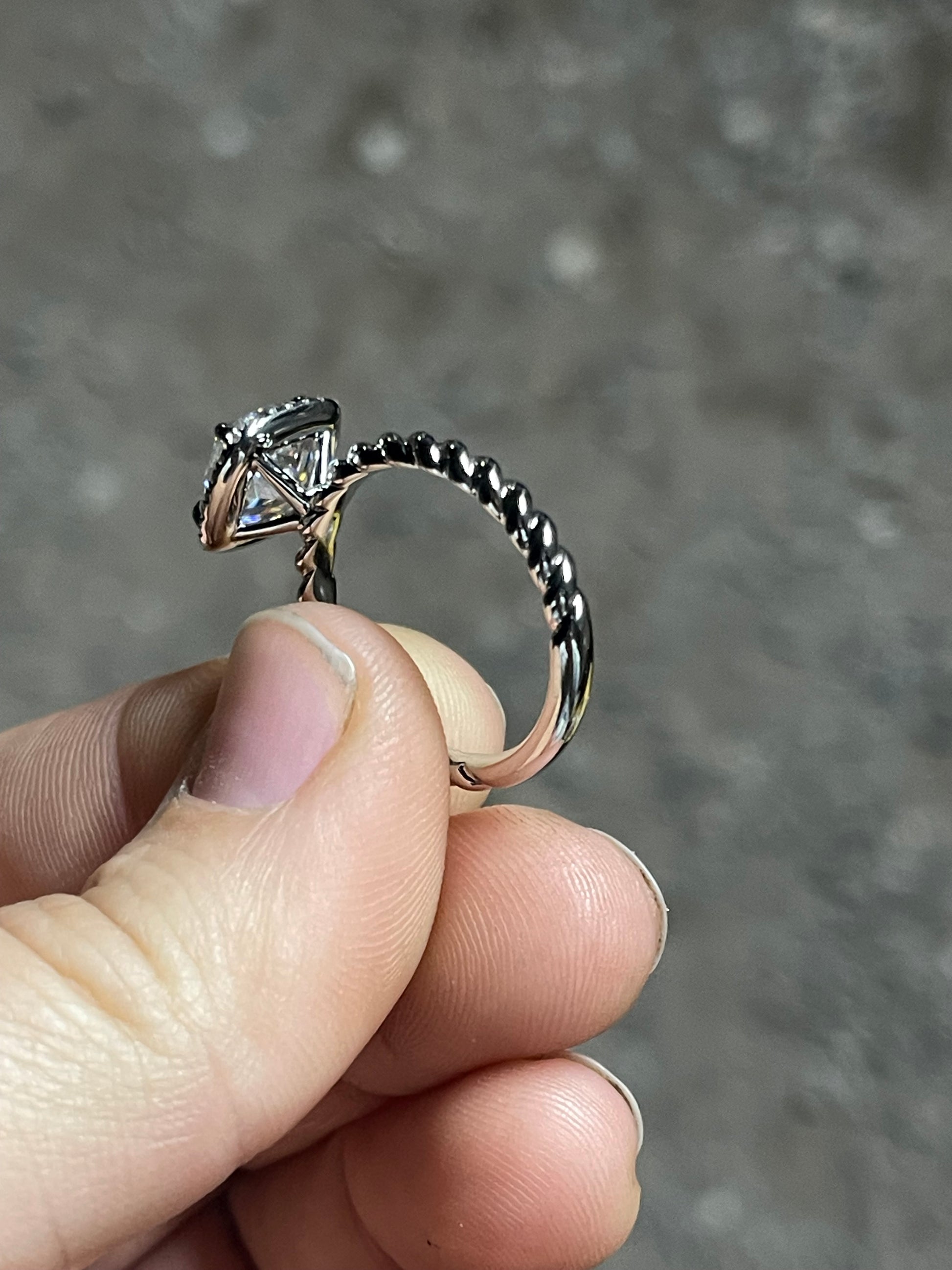 3ct Cushion Cut Moissanite with Halo Moissanite Stones on 3mm Twisted Wire Pattern Band
