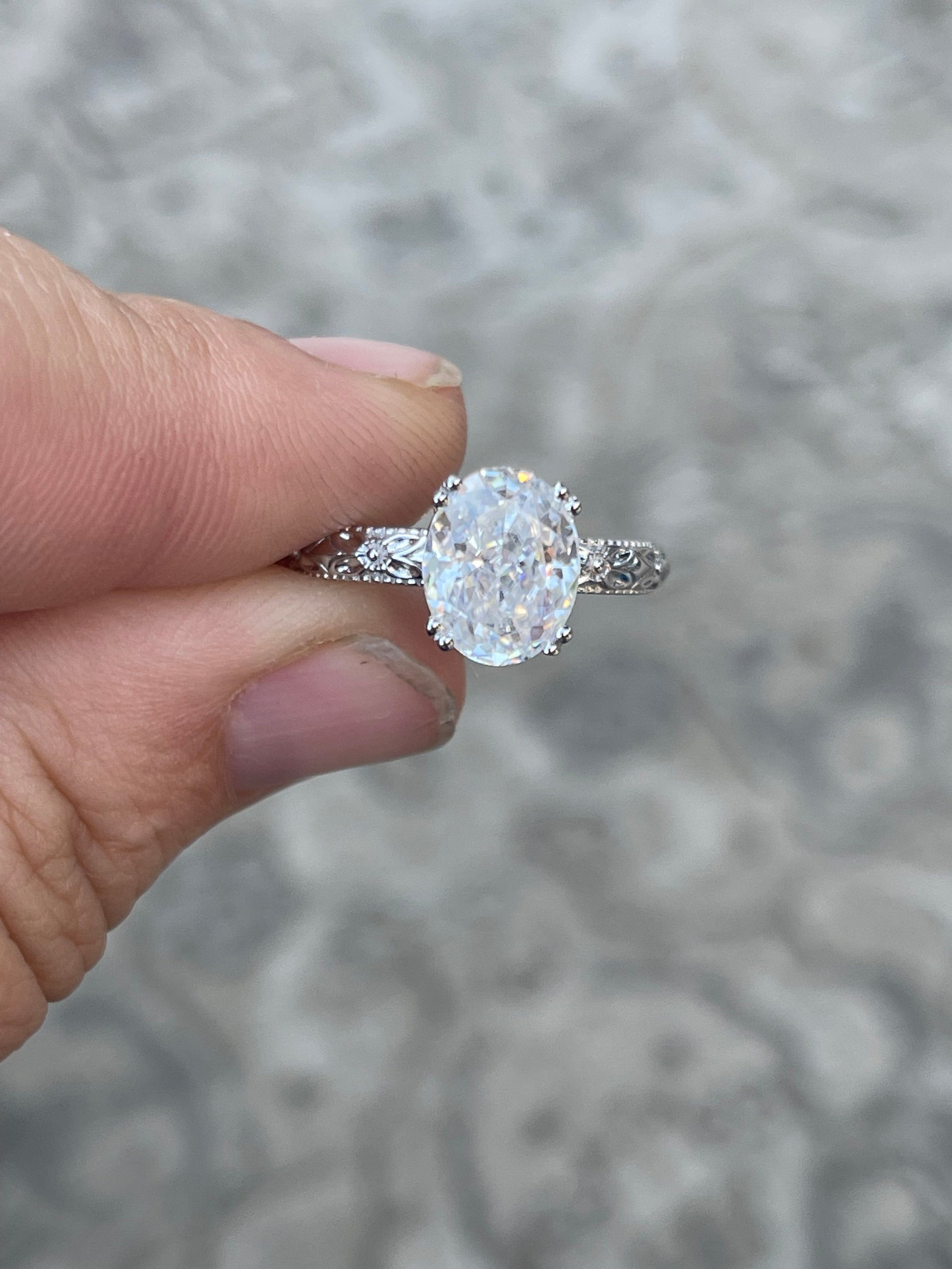 3ct Oval Cut LAB DIAMOND with 3mm Pattern Band