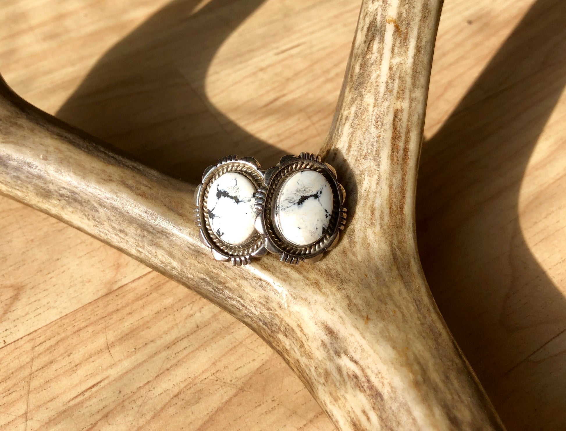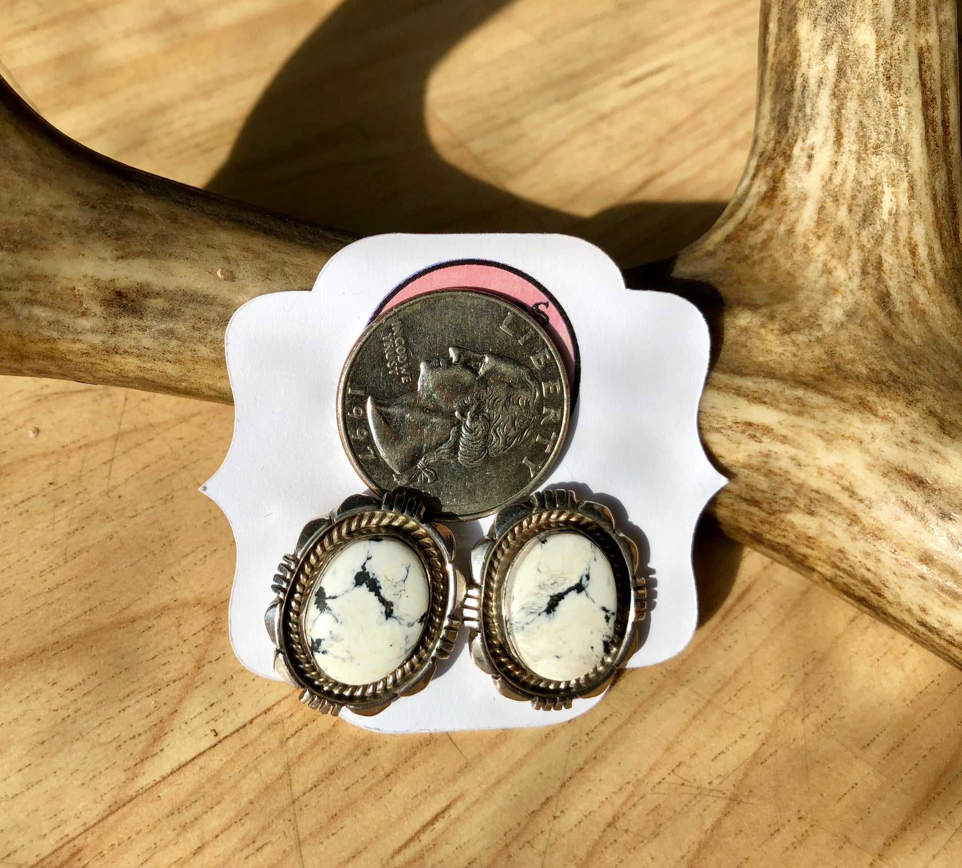 Vintage Native American White Buffalo Sterling Silver Stud Earrings