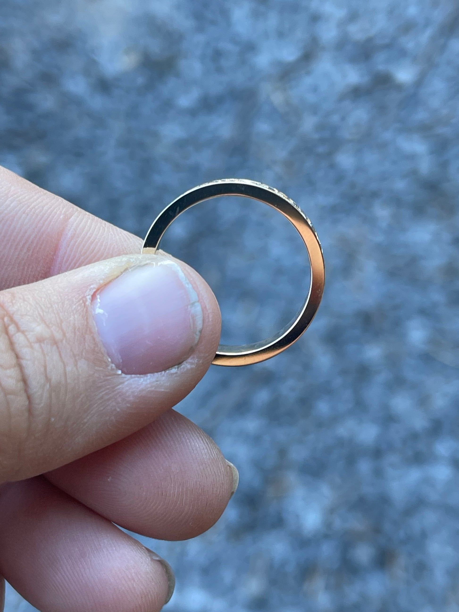 **Gold can react with chemicals found in air and produce tarnish; high moisture levels, exposure to sunlight and contaminants such as salt water increase this reaction. Properly care for ring by polishing with sterling silver polish & a clean cotton cloth.