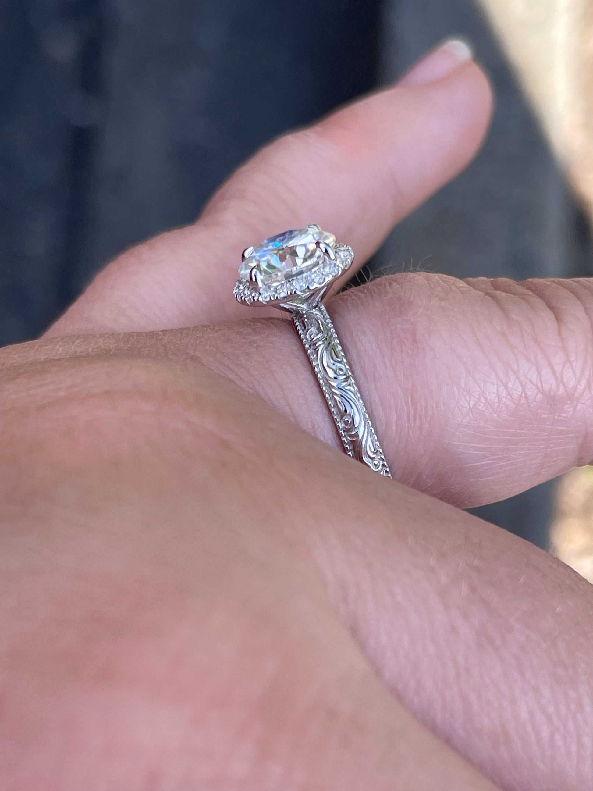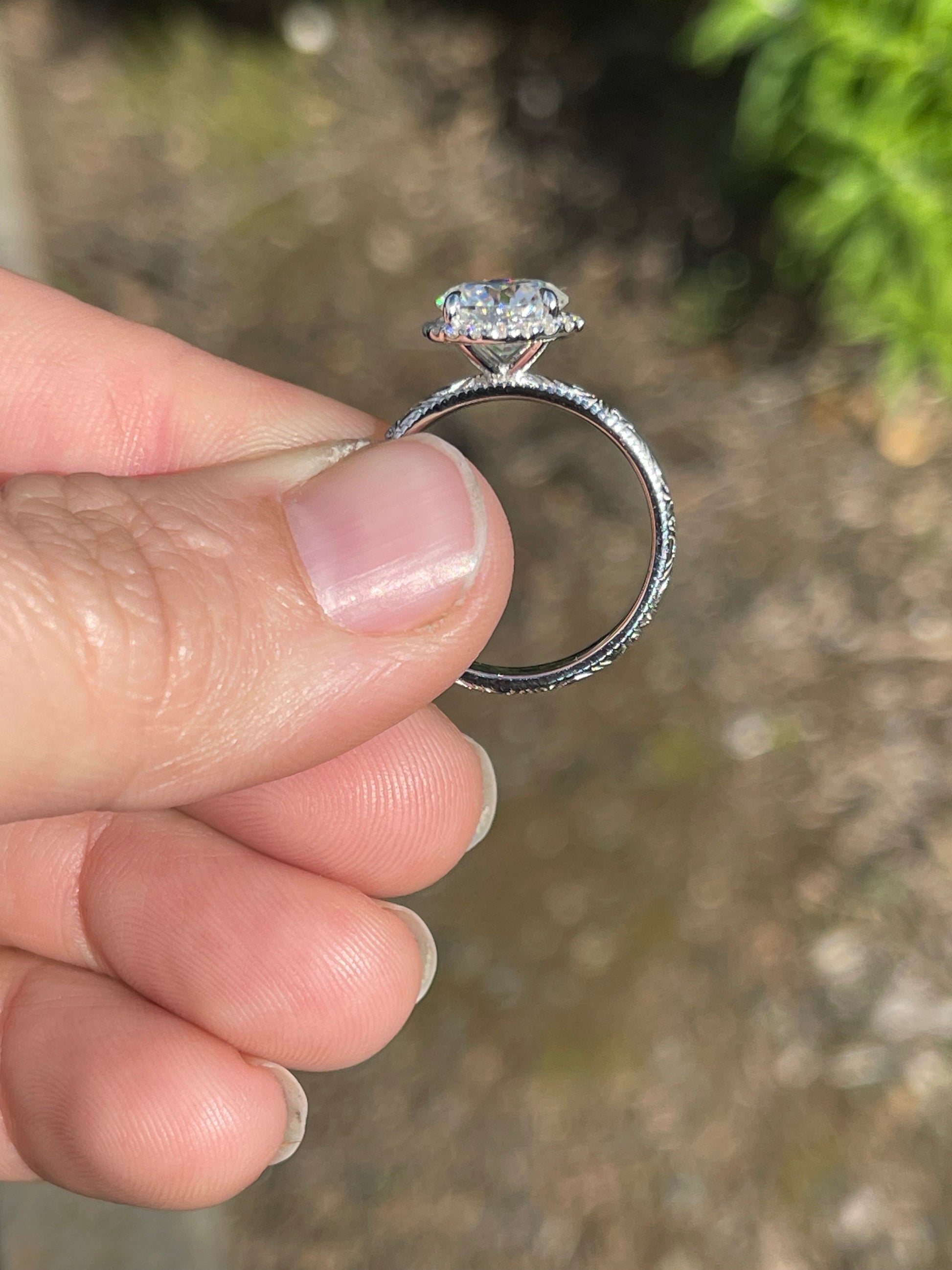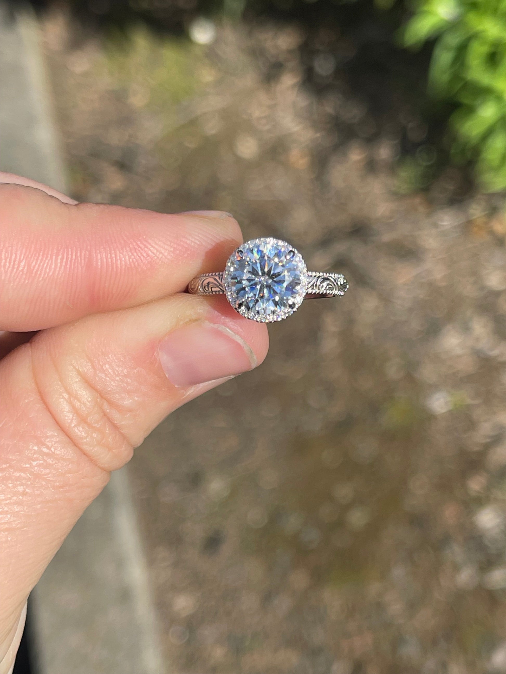 Center Stone: 3ct Moissanite 9mm (GRA Certified)