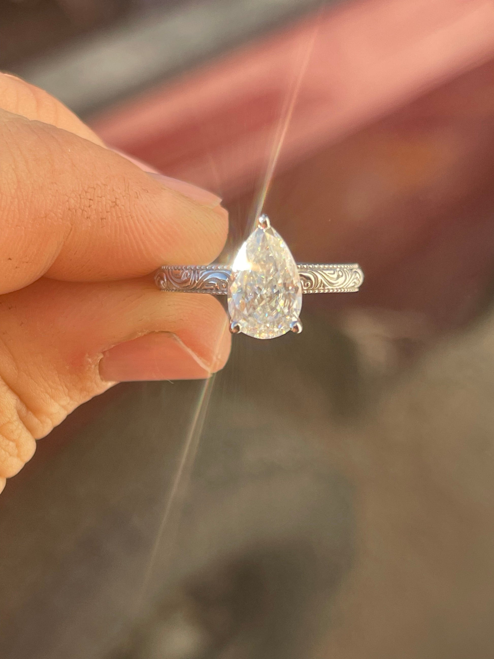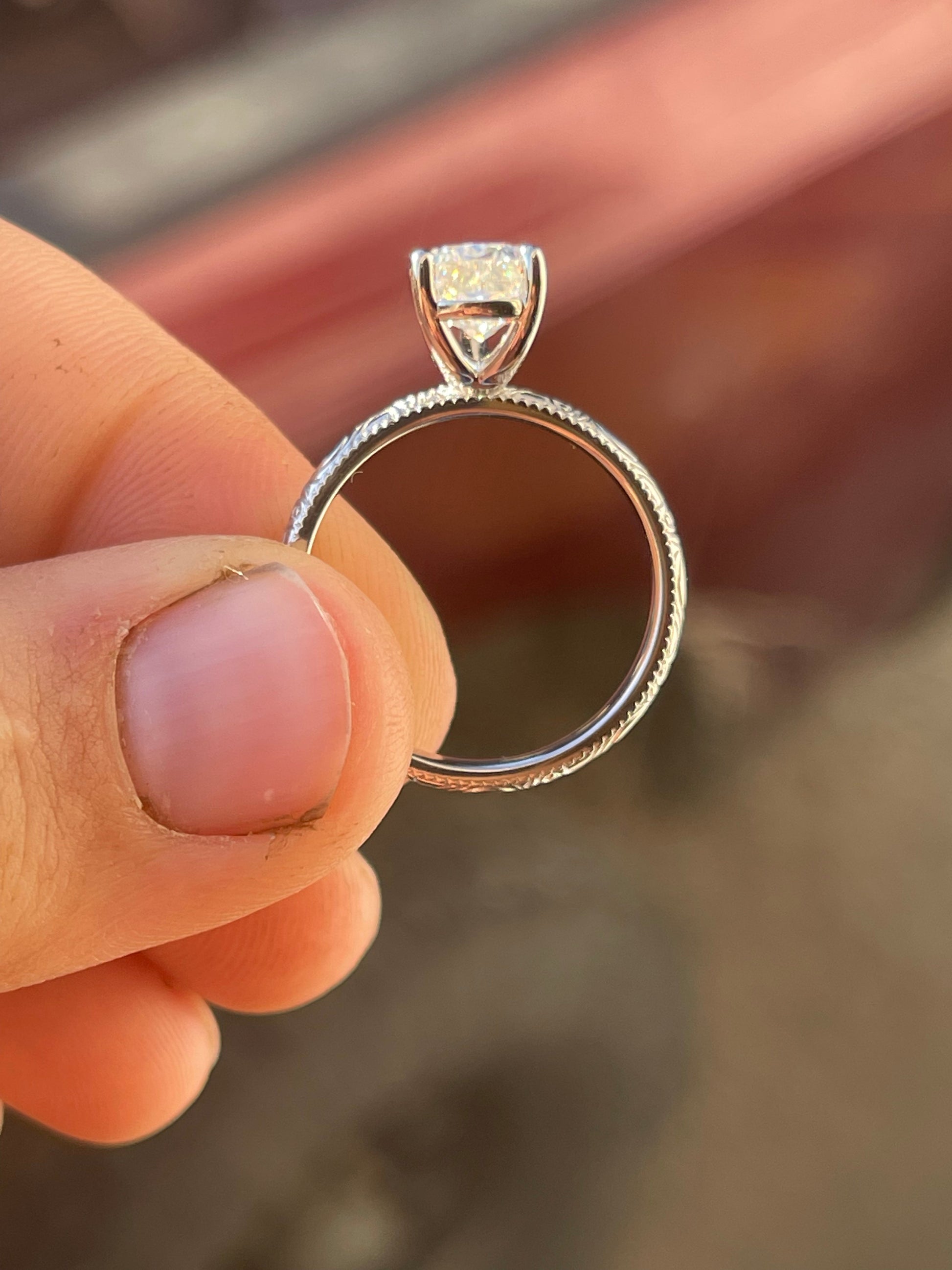 **Sterling Silver can react with chemicals found in air and produce tarnish and oxidize; high moisture levels, exposure to sunlight and contaminants such as salt water increase this reaction. Properly care for ring by polishing with polish & a clean cotton cloth.
